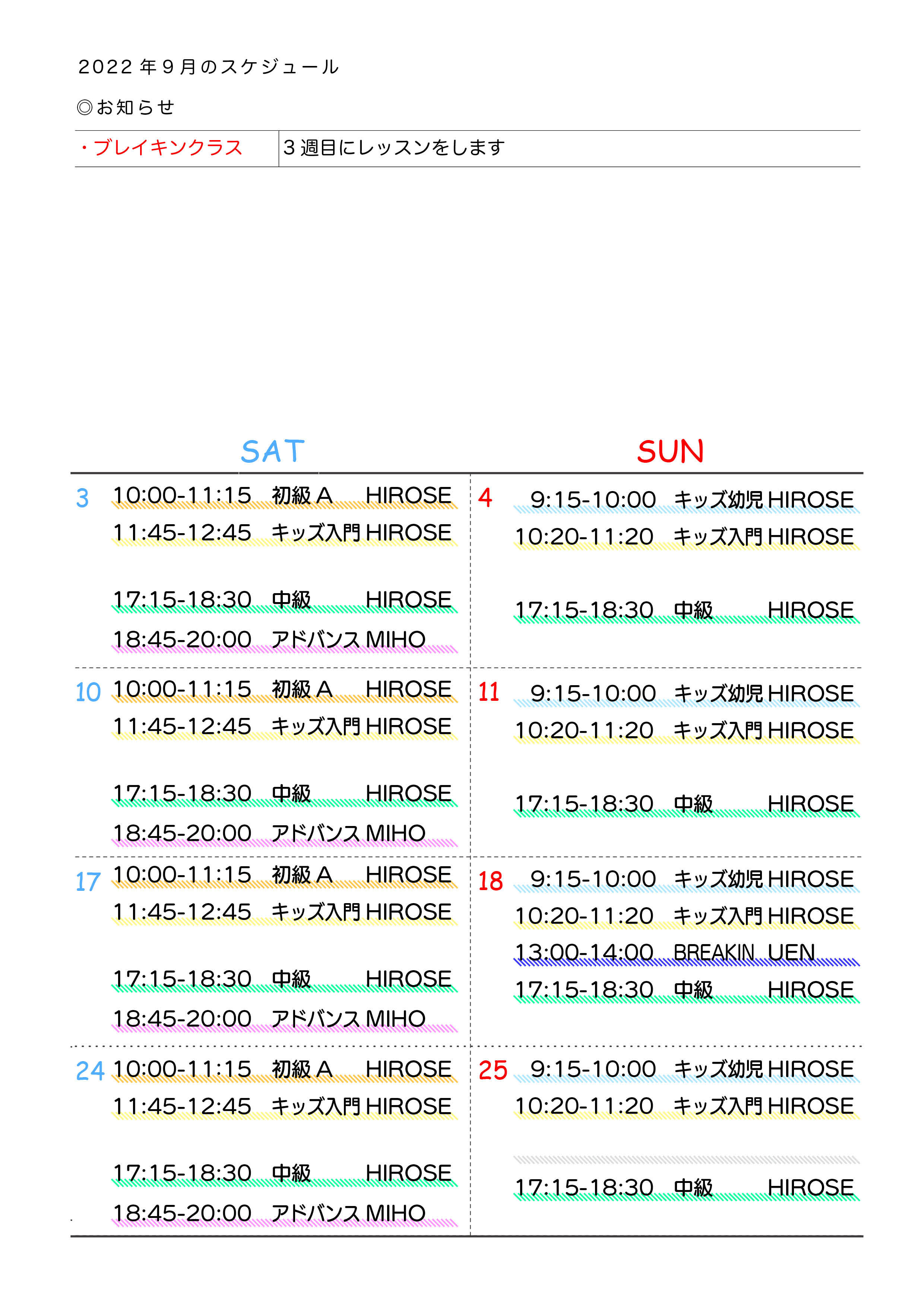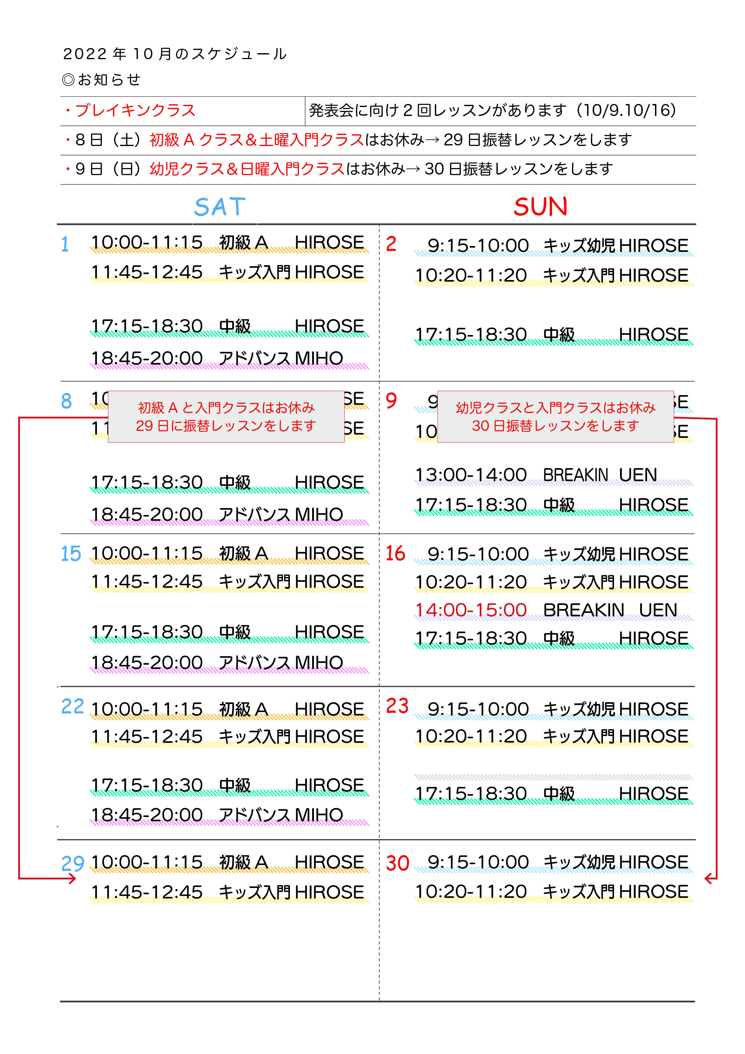 10/16のブレイキンクラスは、レッスン時間が変更になりました