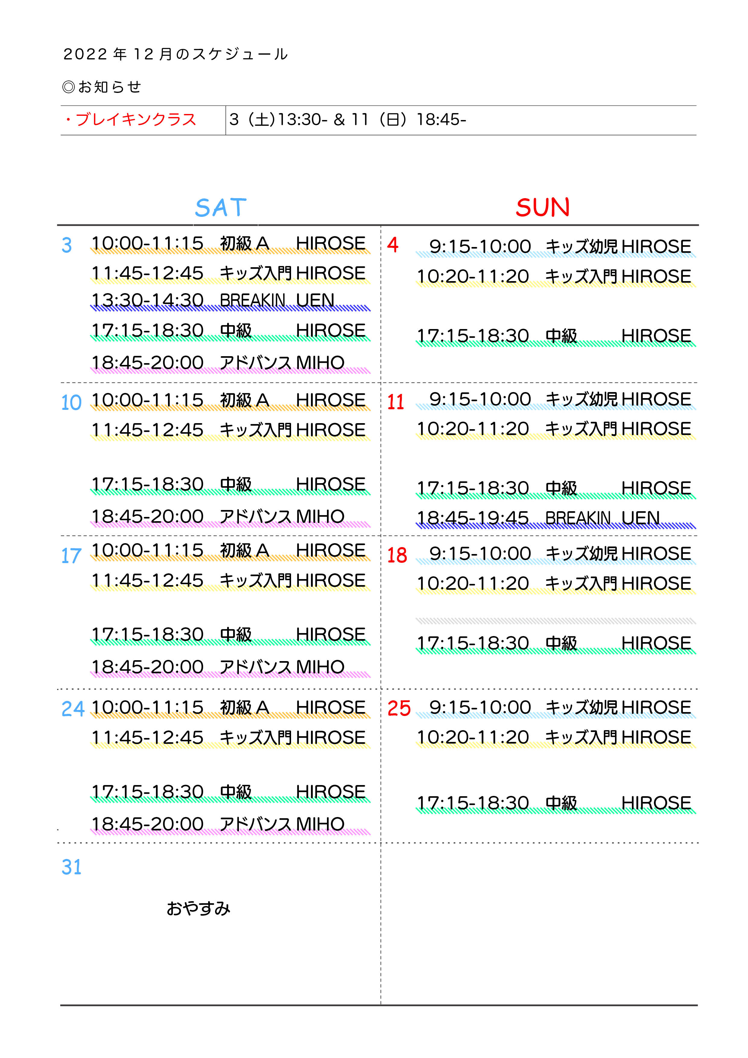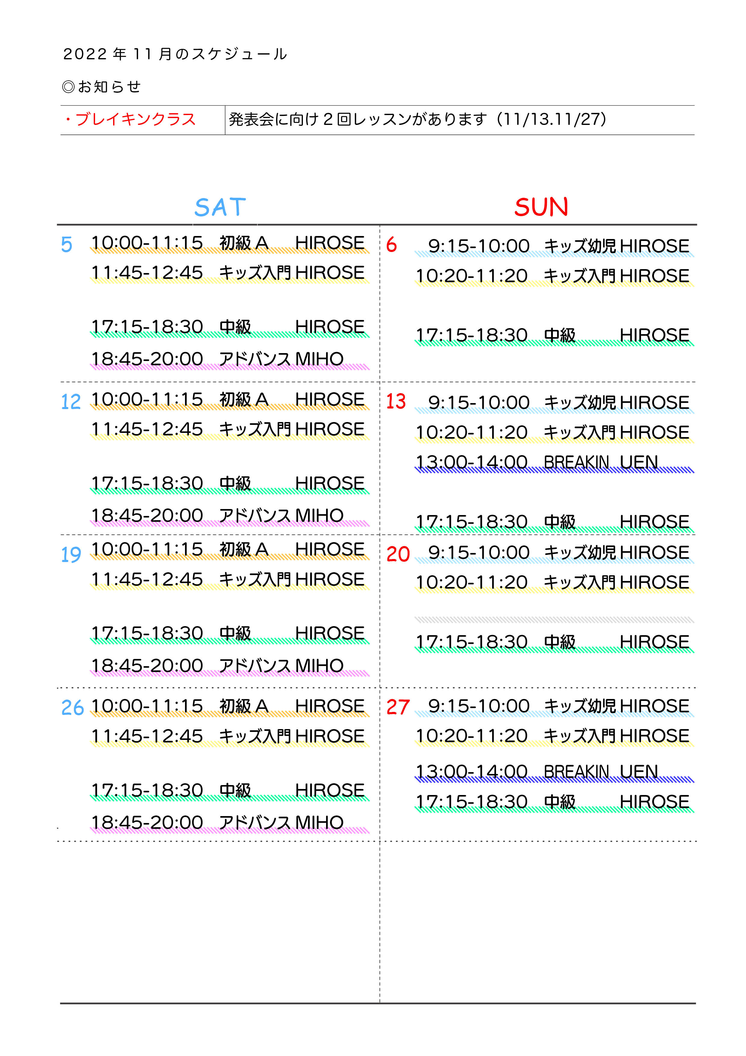 11月13日のBRAKIN クラスのレッスンは休講となります