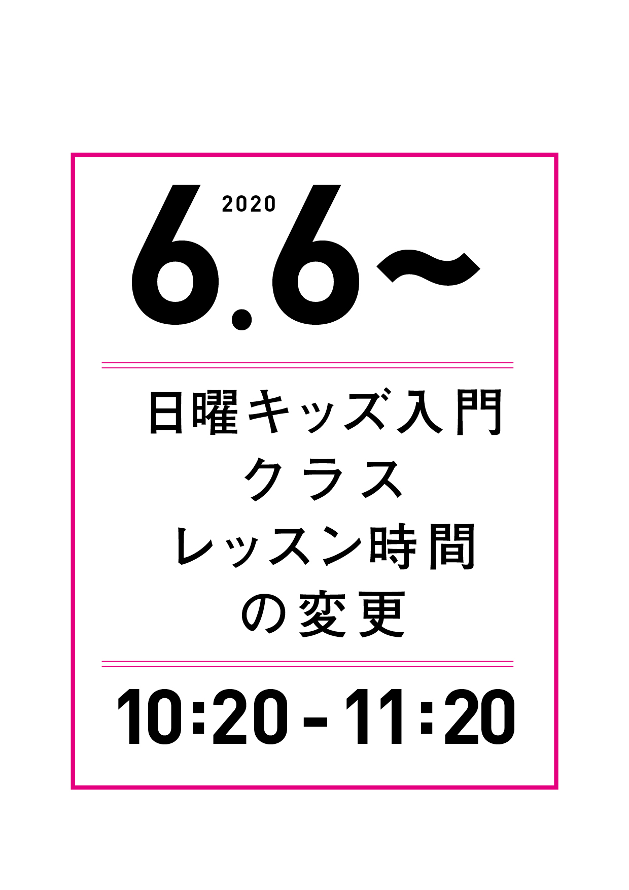 日曜日キッズ入門クラスのレッスン時間変更のお知らせです。