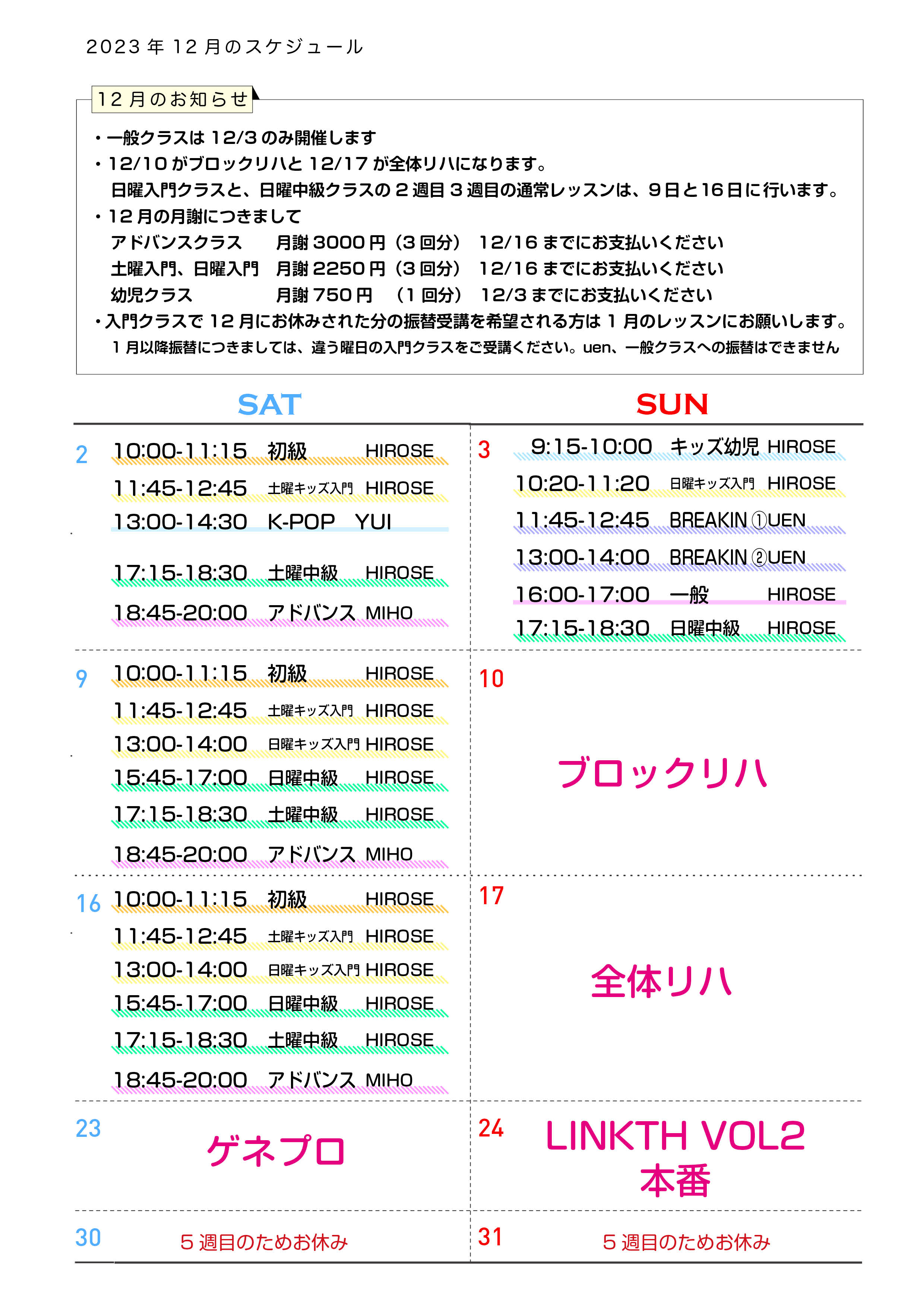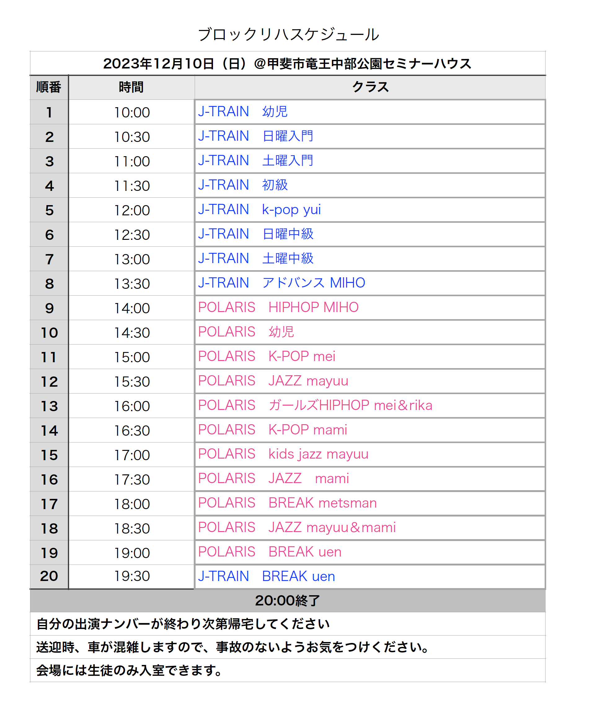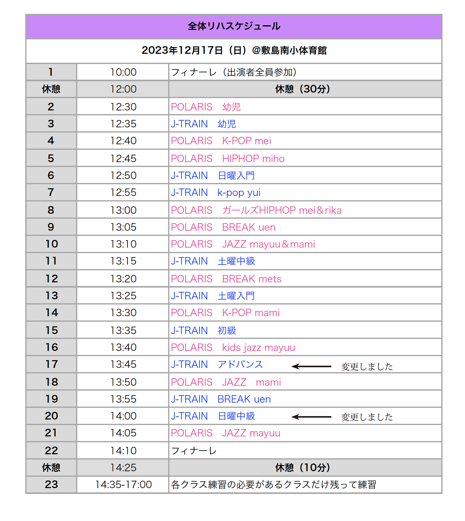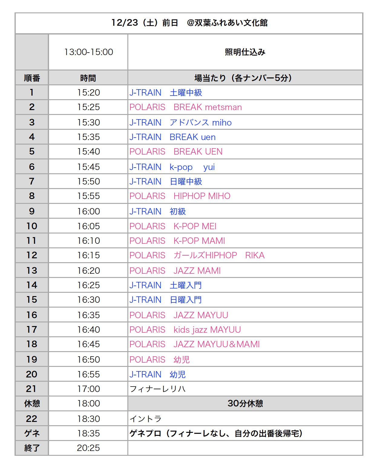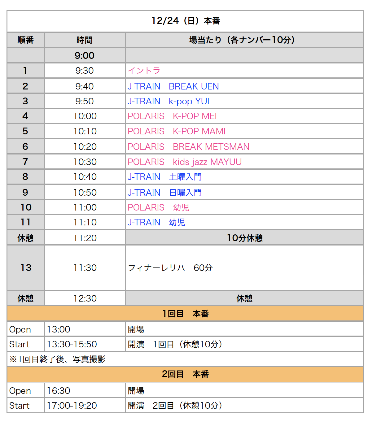 ①自分の出演ナンバーのリハーサル時間のみご参加ください。